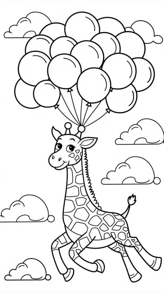 Kolorowanka dla dzieci: Żyrafa z balonami do druku i kolorowania
