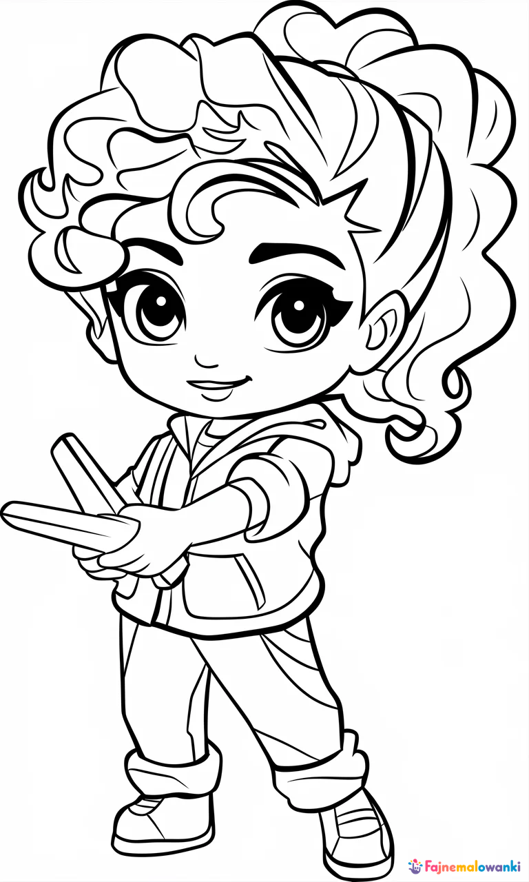 Zapraszamy dzieci do świata kreatywności z naszą kolorowanką! Przedstawiamy uroczą dziewczynkę w casualowym ubraniu, z kucykiem i wyrazistymi, dużymi oczami, która trzyma narzędzie. Postać, narysowana w uproszczonym stylu anime z wyraźnymi konturami, idealnie nadaje się do kolorowania. Szczegóły takie jak podwinięte rękawy i wygodne buty dodają charakteru. Idealna dla młodych artystów do wyrażenia
