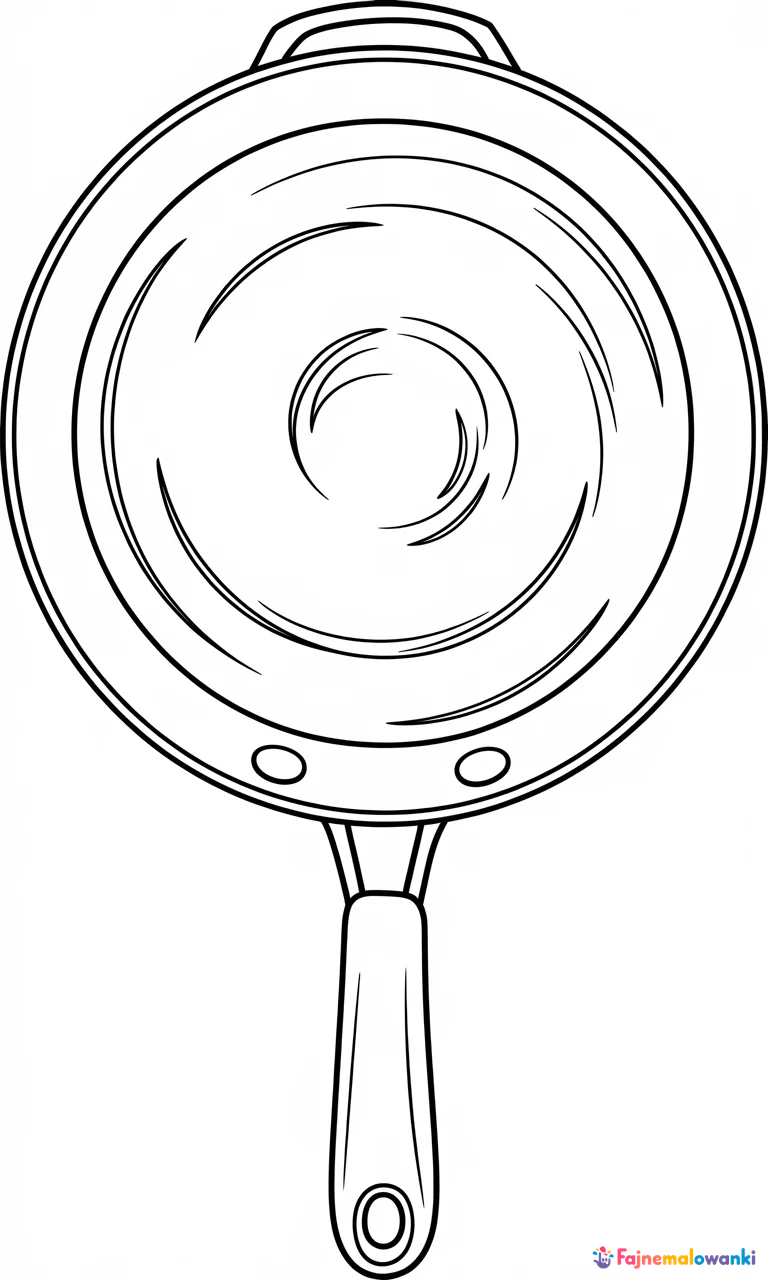 Odkryj świat kulinarnych przygód z naszą kolorowanką dla dzieci, przedstawiającą patelnię kuchenną widzianą z góry. Ten prosty, ale zachęcający rysunek z długim uchwytem i okrągłą powierzchnią do gotowania, wyróżnia się czystymi, czarnymi liniami, idealnymi do pokolorowania przez najmłodszych. Zapraszamy przedszkolaków do wyrażania swojej kreatywności, dodając kolor do tej atrakcyjnej ilustracji.