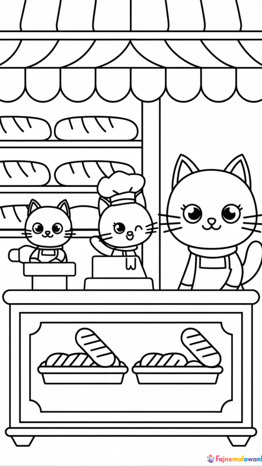 Kolorowanka: Hello Kitty kupuje bagietkę u piekarza dla dzieci