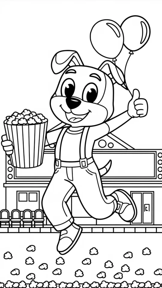 Kolorowanka Goofy z balonami i popcornem dla dzieci do druku