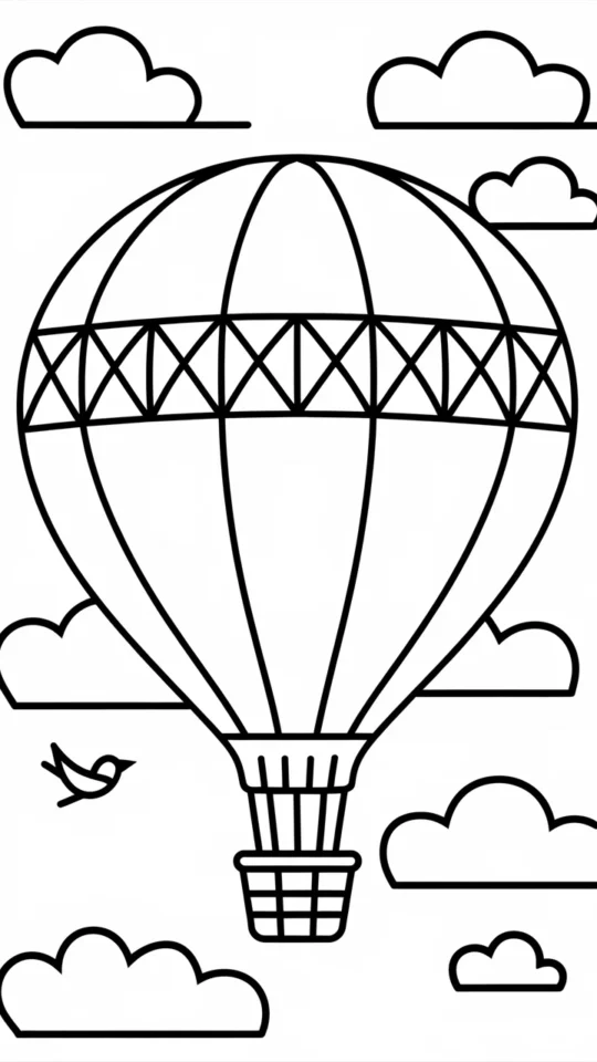 Kolorowanka: Balon unoszący się w chmurach dla dzieci